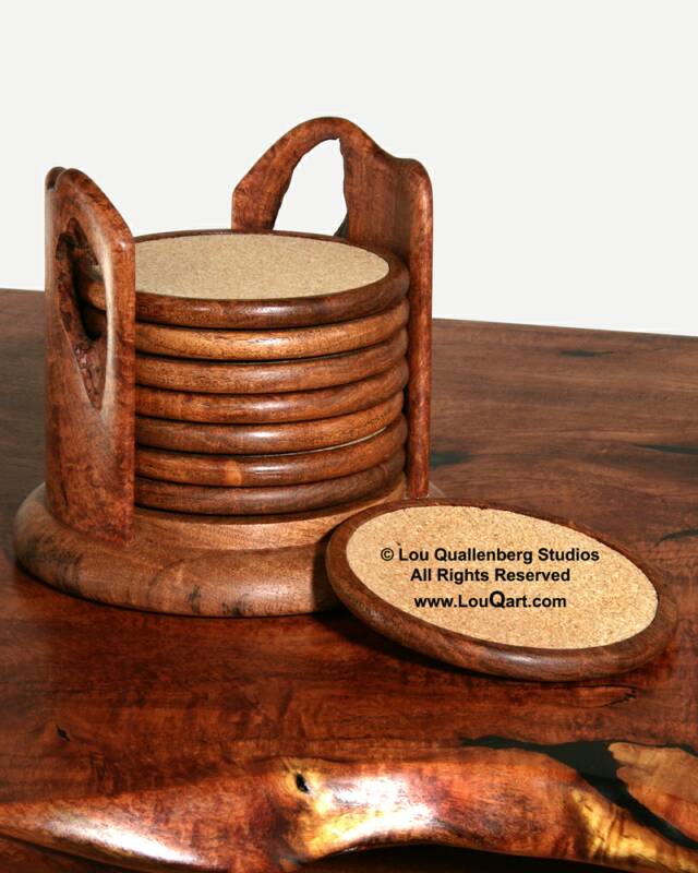 Our mesquite coaster sets are created by Steve A. Walker please call us to check on price, availability or to custom order. The open holes and character of the outside holder will each be one of a kind and may or may not be similer to the set shown in the photo. They come in sets of eight and each coaster diameter is 4 3/8" Our mesquite coasters make great gifts!!